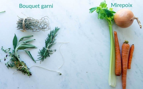 Kỹ thuật nấu ăn truyền thống của Pháp tăng thêm hương vị, cho các món ăn như súp và món hầm. Các đầu bếp ngâm nhiều loại thảo mộc gắn với nhau trong khi nấu để tăng thêm hương vị. Bouquet garni cũng có thể được sử dụng làm lớp nền cho nước sốt và nước kho.