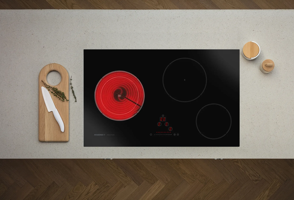 Bề mặt bếp kết hợp 2 từ 1 hồng ngoại Rosières PMI732N được làm từ gốm kính đen Eurokera cao cấp, không chỉ mang lại vẻ đẹp sang trọng mà còn đảm bảo tính bền bỉ và an toàn trong quá trình sử dụng.