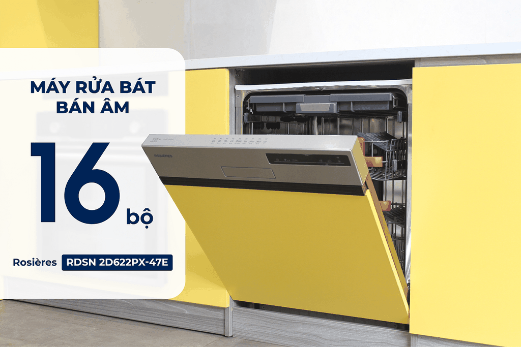 Sở hữu thiết kế bán âm tinh tế, dung tích 16 bộ rộng rãi, 9 chương trình rửa tự động, 6 mức nhiệt độ linh hoạt cùng các công nghệ tiên tiến như Rapid Wash, Steam Wash và Extra Dry, Rosières RDSN 2D622PX-47E lựa chọn hoàn hảo cho những gia đình tìm kiếm một chiếc máy rửa bát vừa sang trọng, hiện đại, vừa hiệu quả và bền bỉ.