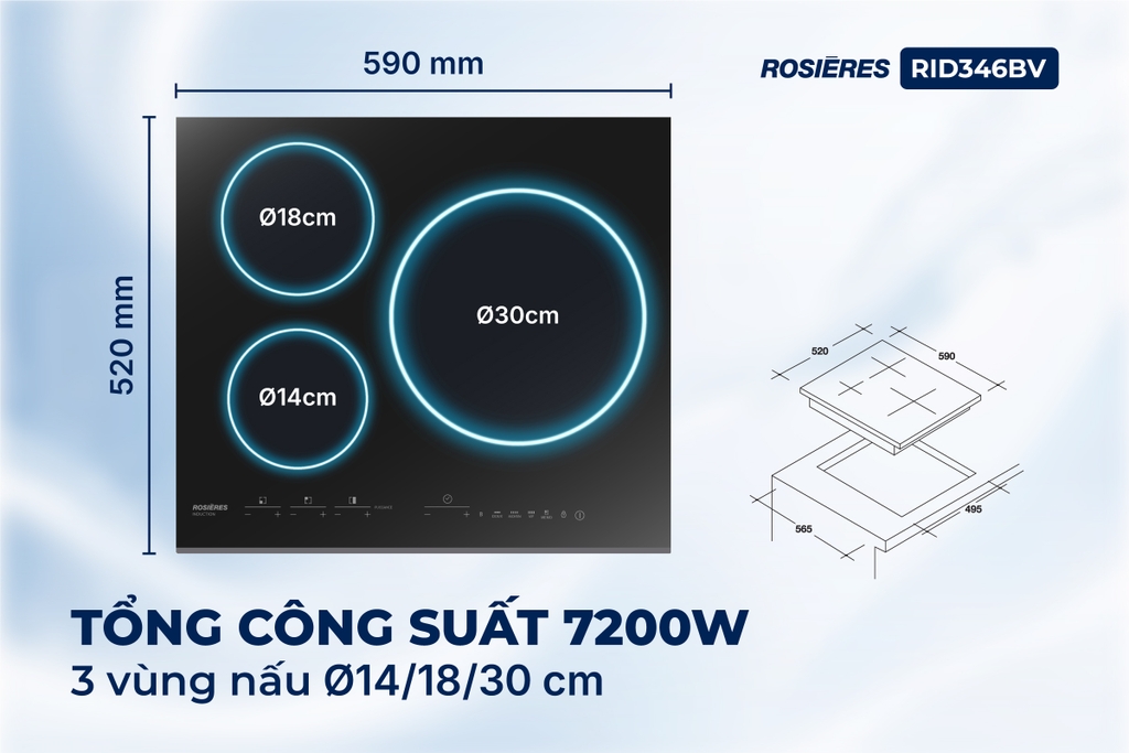 Hướng dẫn lắp đặt bếp từ 3 vùng nấu Rosières RID346BV: